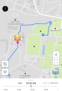 赤の点が、今走っている位置で、顔のマークのところに名前が表示されます。