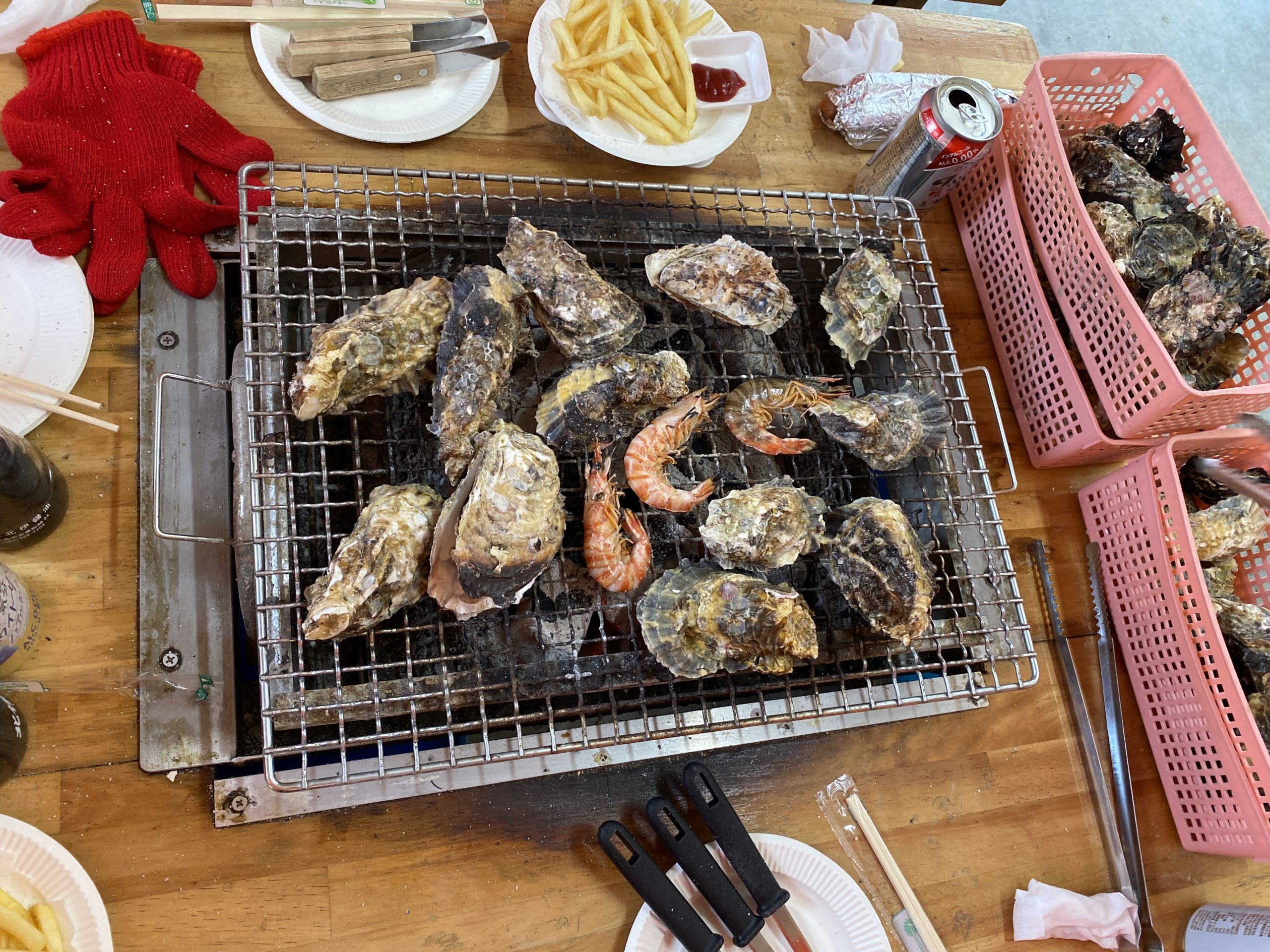 あとは牡蠣などの海鮮を注文して、自分たちで焼いて食べます。