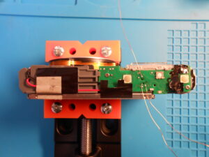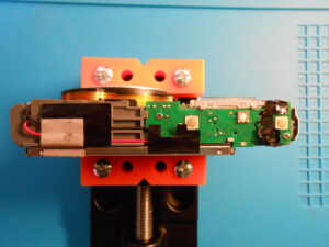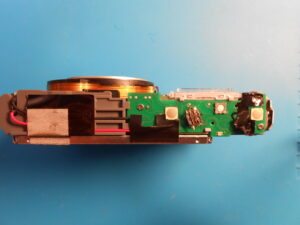 本来は赤丸部分の部品の右に、下の写真のように黒いひげのような部品がついているはずですが、なくなっています。