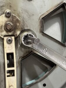 メガネレンチで左上(10時の方向)に向けてこねながら修正しているところ。