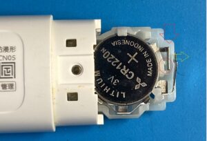 どうも赤丸の部分が電池側に寄りすぎて、右にある接点が届かない様子だった。